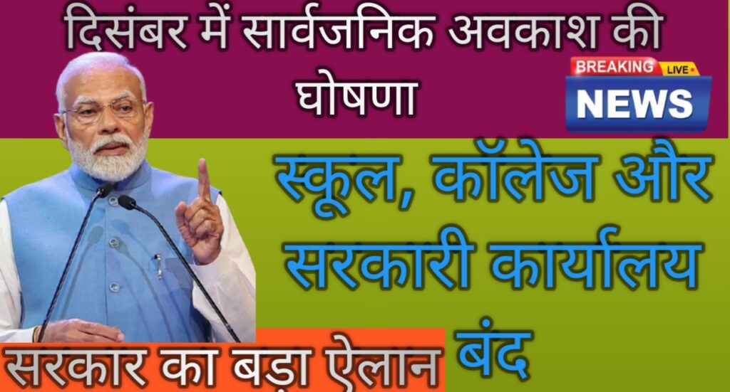 दिसंबर में एक और सार्वजनिक अवकाश घोषित: स्कूल, कॉलेज और सरकारी दफ्तर रहेंगे बंद – आधिकारिक नोटिस जारी