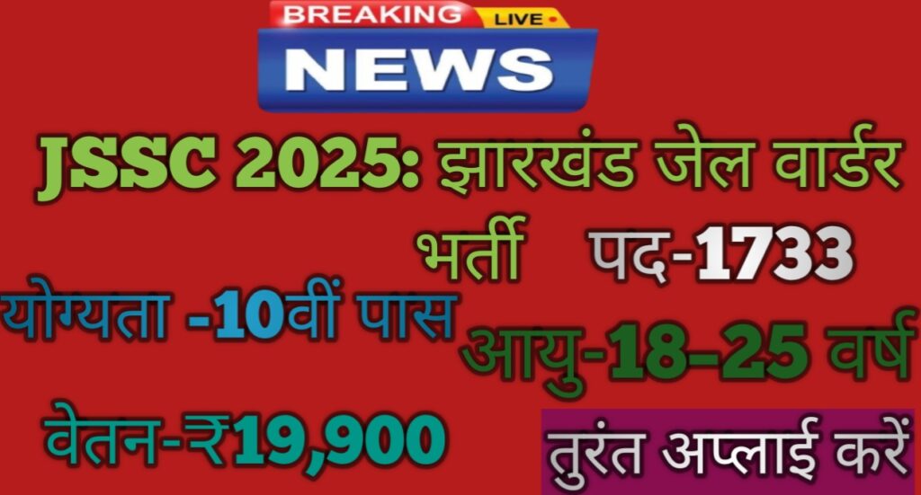 JSSC 2025: झारखंड जेल वार्डर भर्ती — 1733 पदों पर आवेदन की आखिरी तारीख आज! 10वीं पास हैं? तुरंत अप्लाई करें