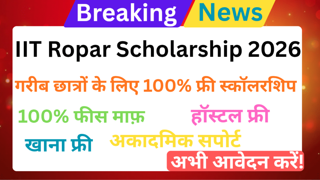 परिचय IIT Ropar Scholarship 2026 गरीब और मेधावी छात्रों के लिए एक सुनहरा अवसर है। अगर आप आर्थिक रूप से