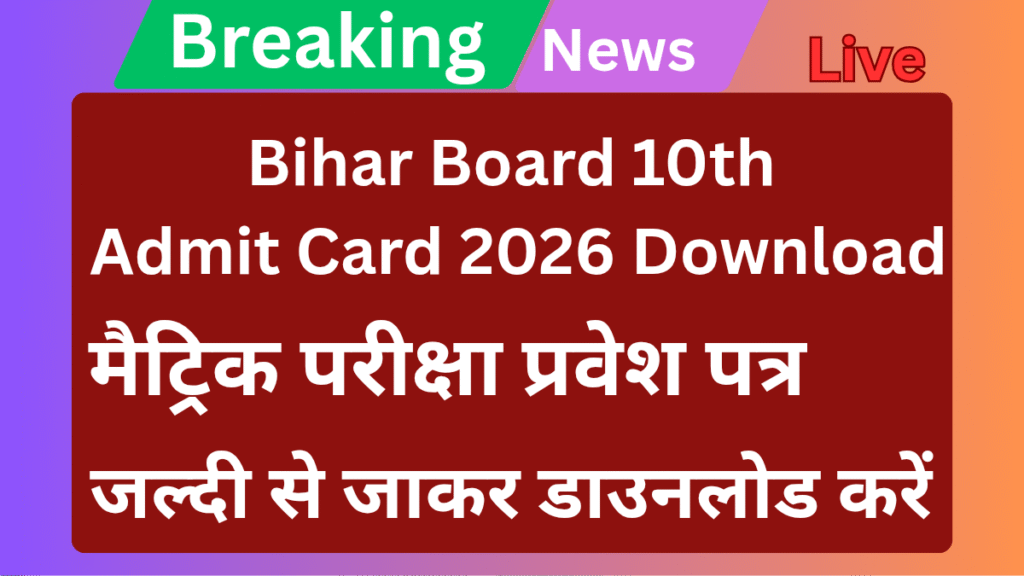 परिचय बिहार विद्यालय परीक्षा समिति (BSEB) द्वारा Bihar Board 10th Admit Card 2026 आधिकारिक रूप से जारी कर दिया गया