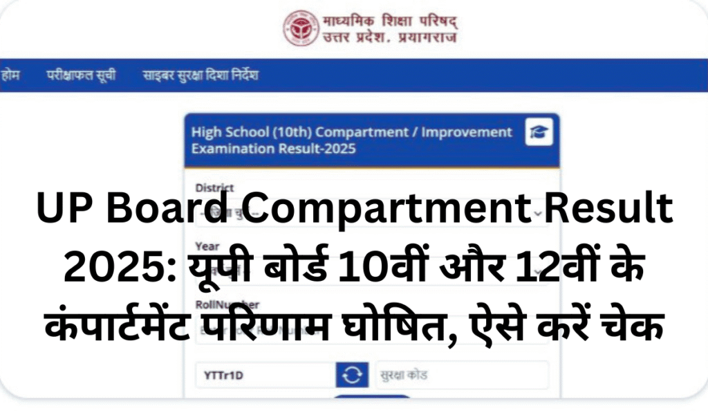 UP Board Compartment Result 2025 : यूपी बोर्ड 10वीं और 12वीं कंपार्टमेंट परिमाण घोषित, ऐसे करें चेक
