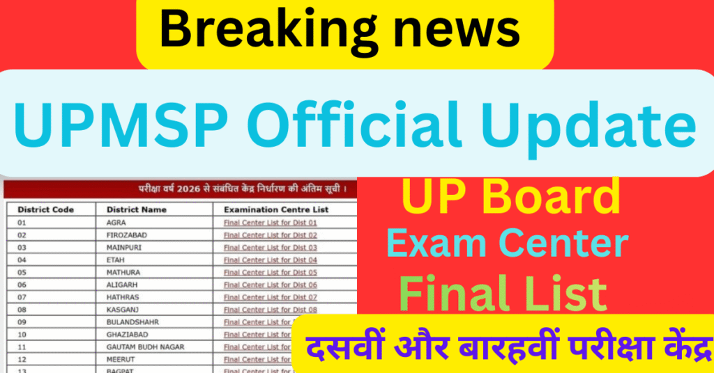 परिचय UP Board Exam Center Final List को लेकर यूपी बोर्ड की ओर से बड़ी खबर सामने आई है। दसवीं
