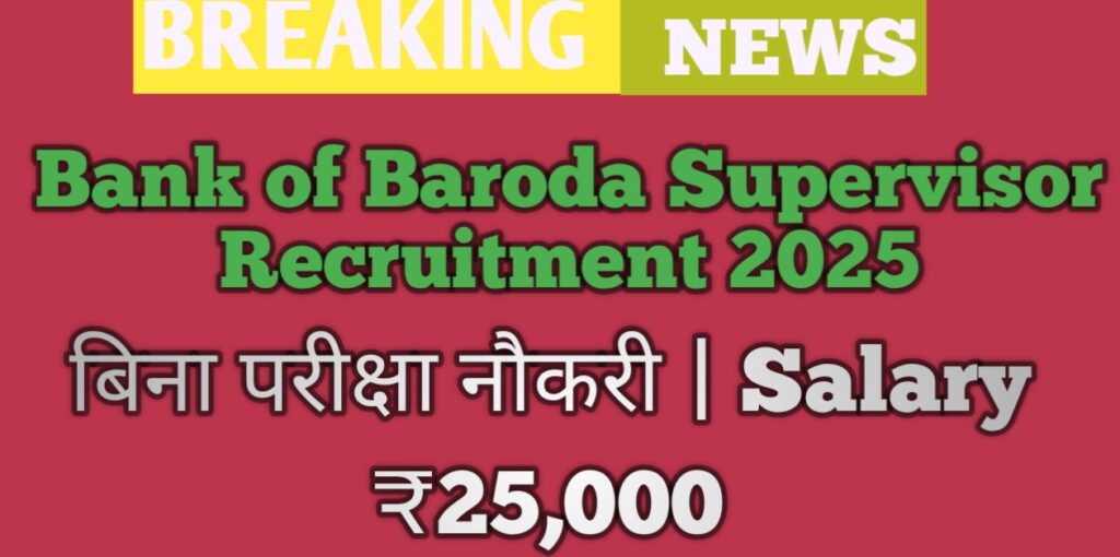 Bank of Baroda Supervisor Recruitment 2025: बैंक ऑफ बड़ौदा सुपरवाइजर भर्ती आवेदन शुरू, बिना परीक्षा मिलेगी नौकरी