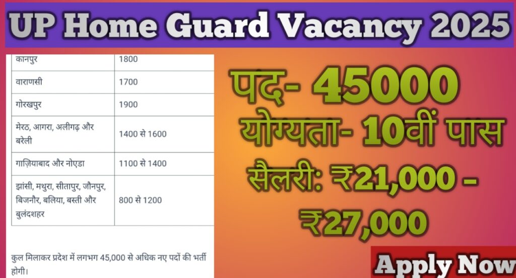 UP Home Guard Vacancy 2025: यूपी में 45000 होमगार्ड भर्ती के आवेदन शुरू, जिलेवार वैकेंसी, सैलरी और पूरी जानकारी